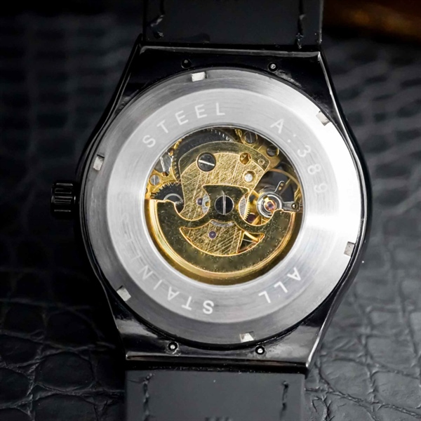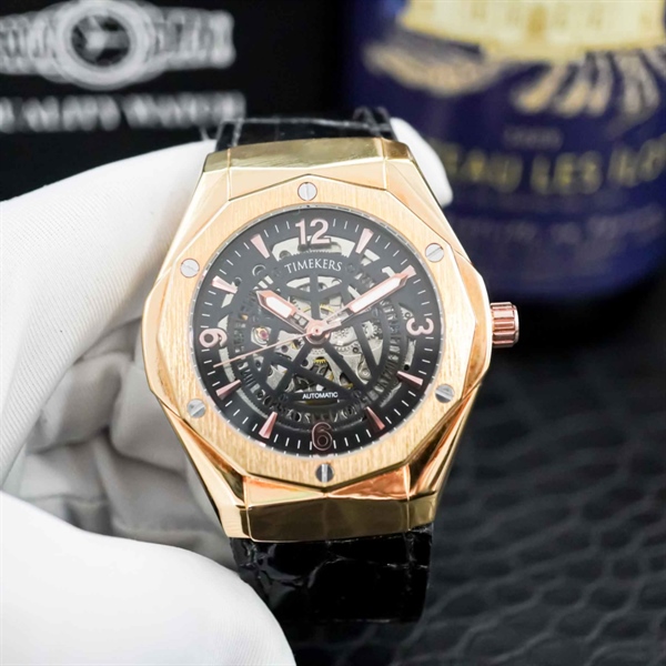 D11/TIMEKERS cơ Dây da đen, mặt vàng